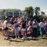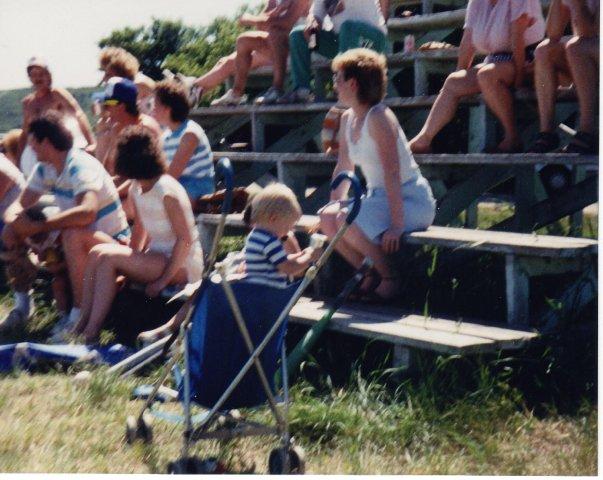 - Bernie with kids and other spectators.